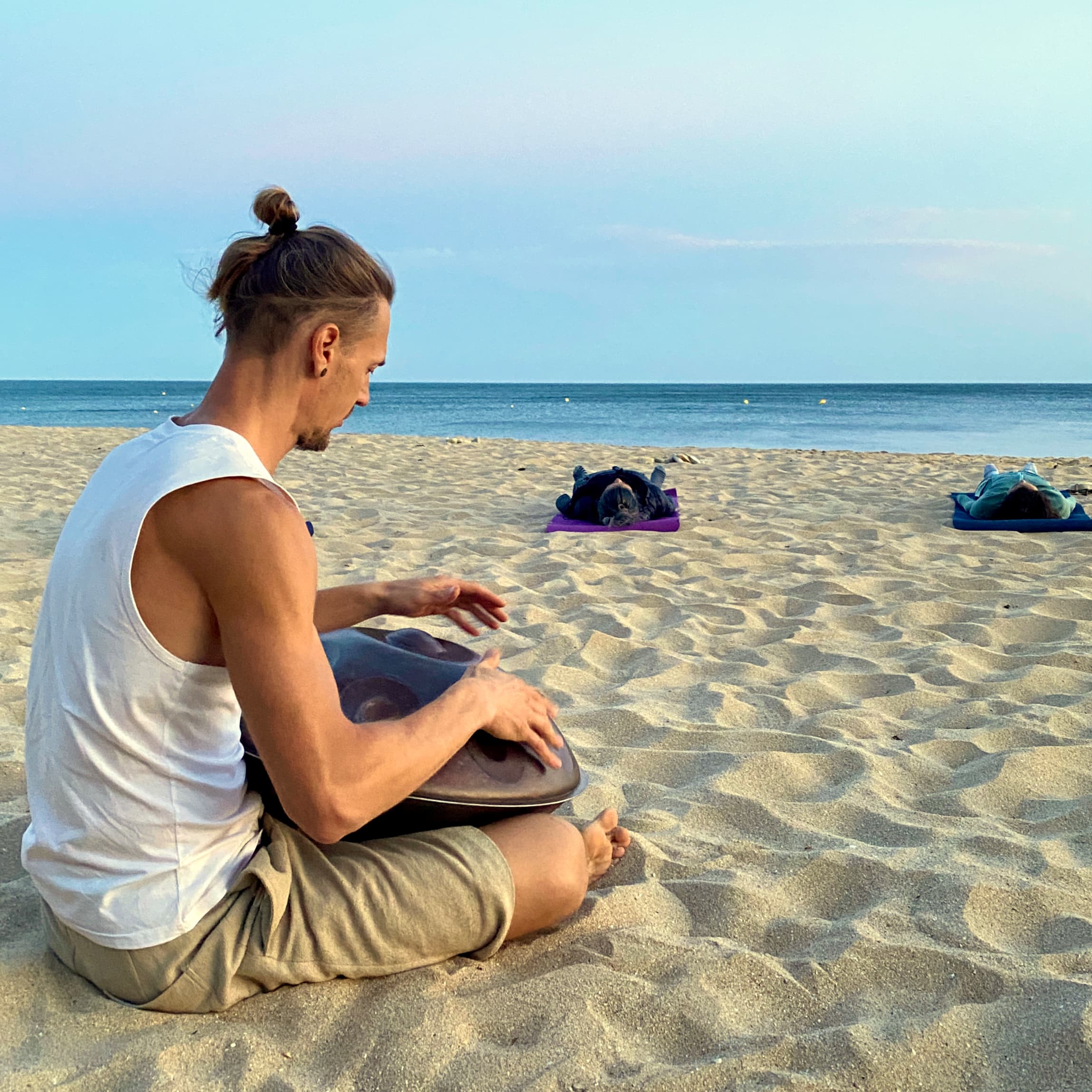 A rejuvenating beach yoga session combining mindful yoga with deep relaxation, guided by a meditative live handpan sound journey.